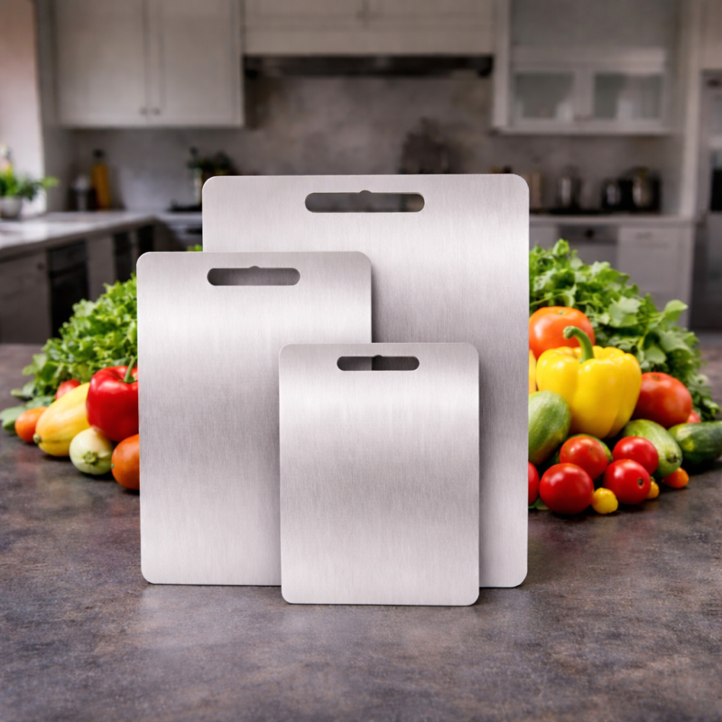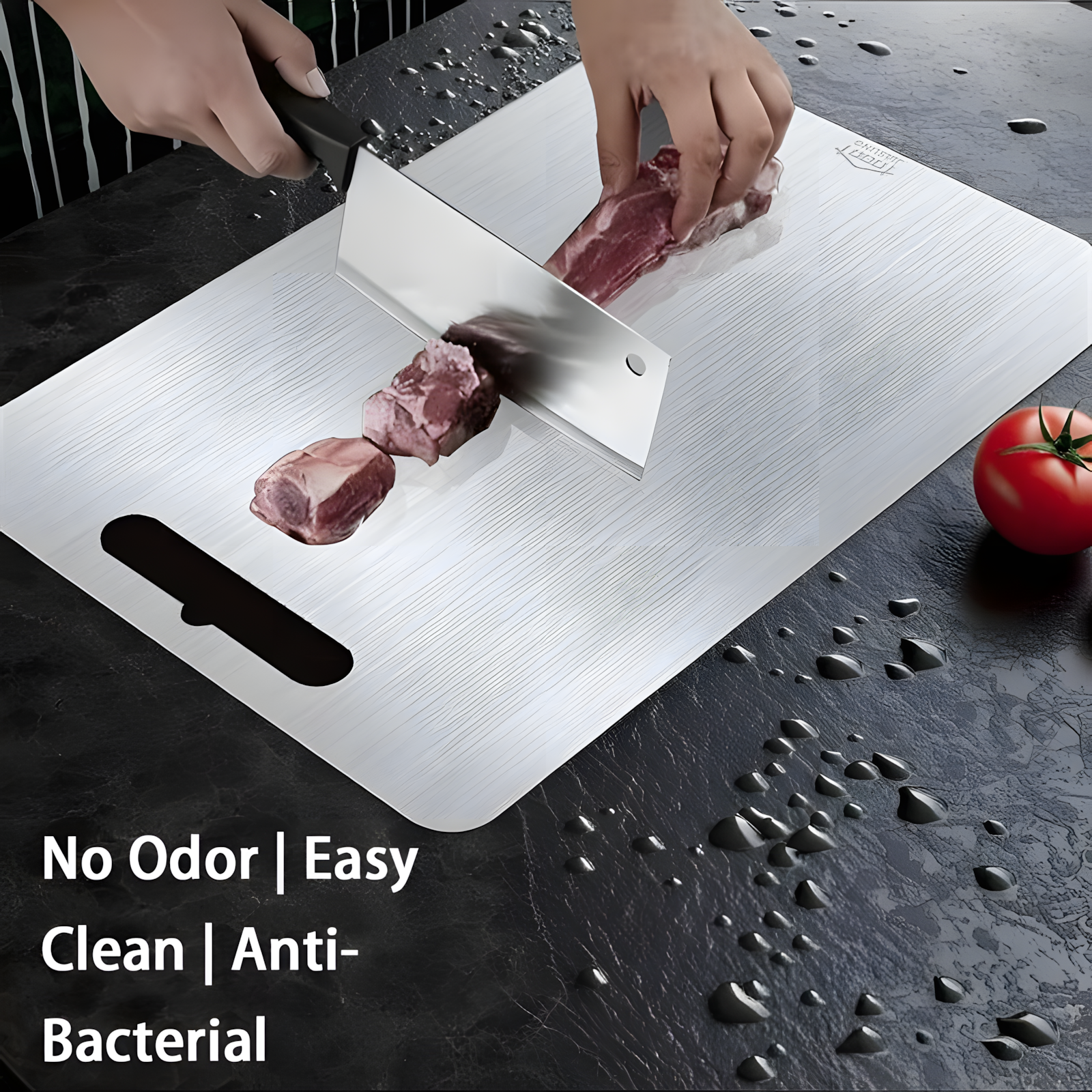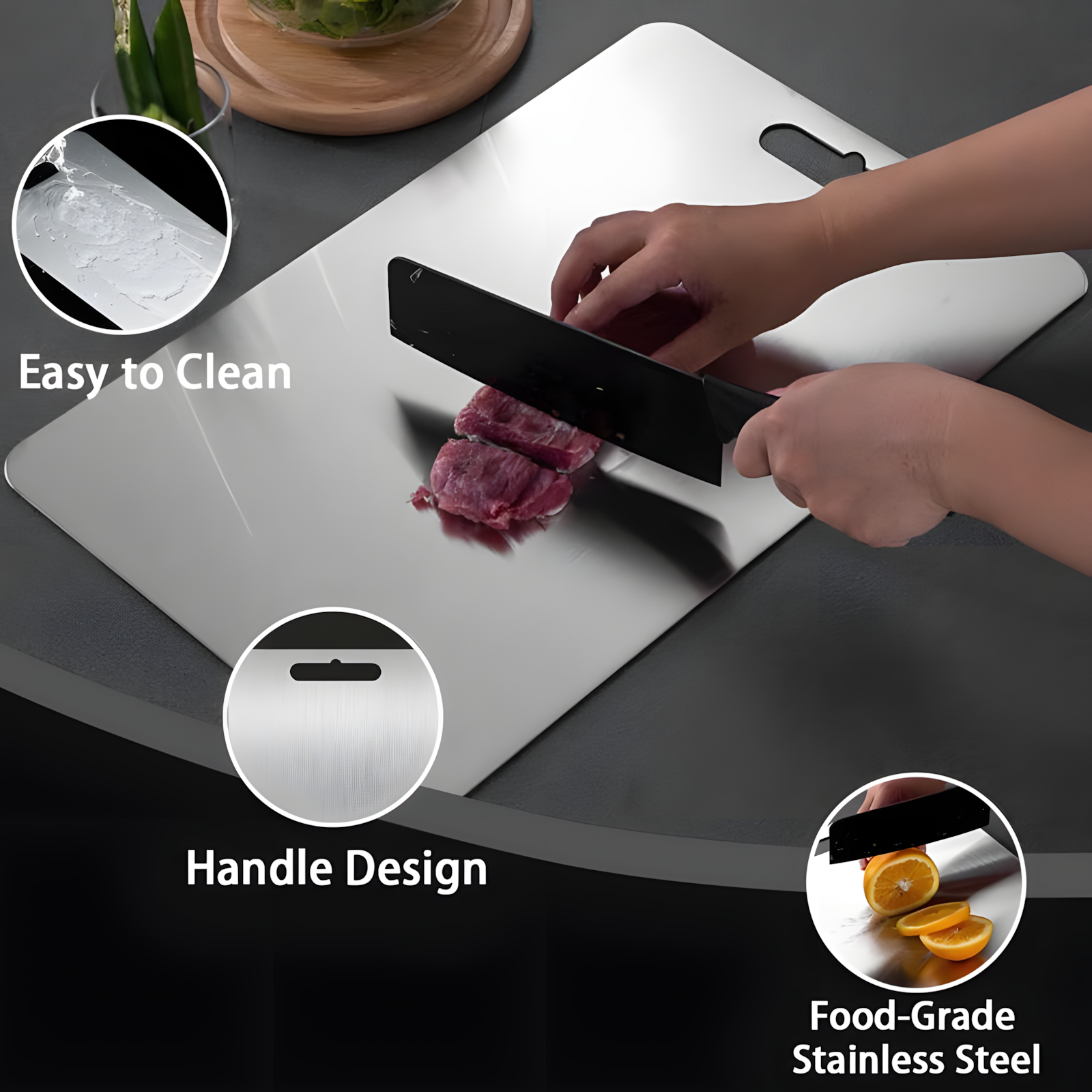 Wood and plastic boards absorb odors and bacteria. This steel cutting board stays clean, doesn’t stain, and wipes down in seconds. Food prep feels faster, cleaner, and way more hygienic every time.